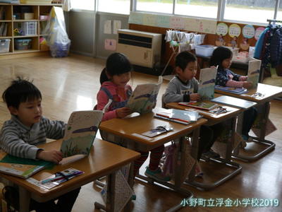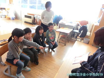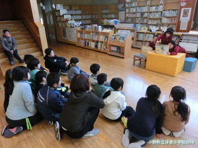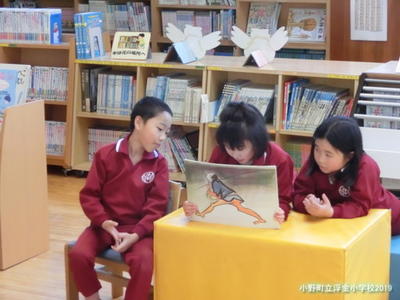 金曜日の昼休みに3年生の子どもが3人で読み聞かせ会を開きました。