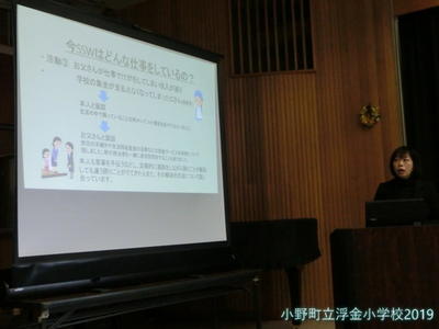 授業参観後には、小野町のスクールソーシャルワーカーである松尾先生に、スクールソーシャルワーカーの仕事についてお話しいただきます。