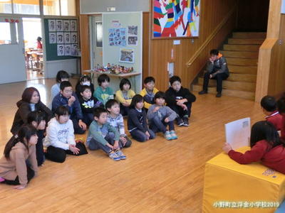高学年を中心に集まってきてくれて話を聞きました。(やさしいお兄さんお姉さんたちです。)