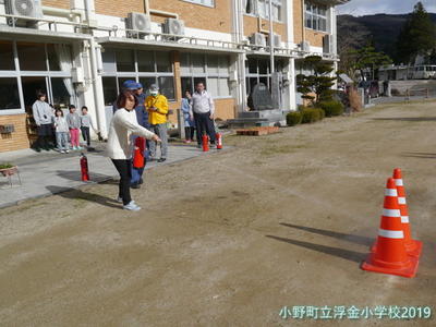 その後、サイレンが鳴り、火災発生想定で校庭に避難しました。