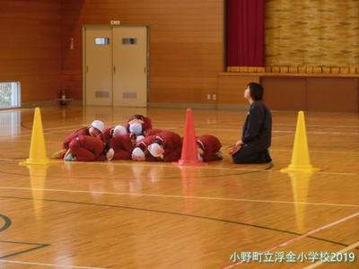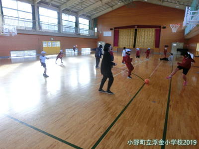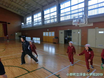 たまたま、体育館で体育をしている1・2年生の様子を見ていました。