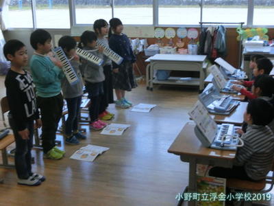 1年生は、「校歌」と「なかよし」を演奏します。2年生は「こぎつね」と「山のポルカ」を演奏します。