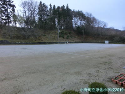 朝、校庭の南側(山側)の方がうっすらと白くなっていました。