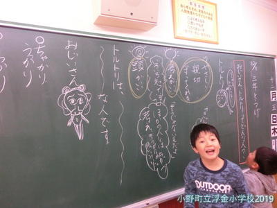 子どもたちの考えるトルトリは、やさしい、親切、考えがいい(発想がすごい)物知り・・・最後に、自分の考えを一文で書きました。