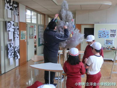 冬休みまでの2週間、多目的ホールを飾る浮金ツリーが楽しめそうです。
