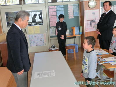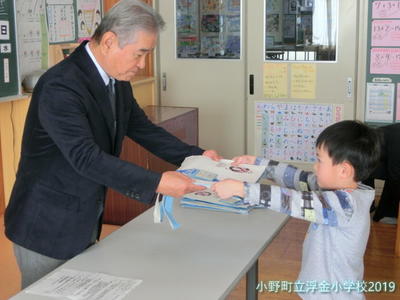 2019年11月13日 16時00分西牧教育長とふるさと文化の館の西牧さんが来校し、読書スタートバッグ贈呈式を行いました。