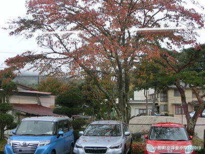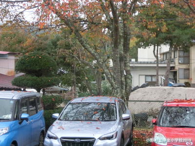 ふと目を外に向けると、落ち葉が職員の自動車の上にのっていました。