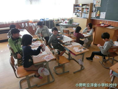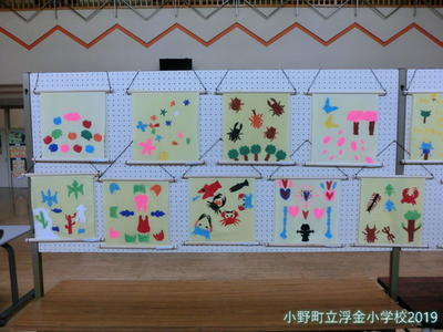 工作と絵が合体したような題材です。子どもたちが楽しみながらつくったことが伝わってきます。