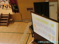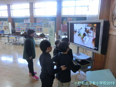 学習発表会に合わせてこれまでの活動の様子を紹介しようと写真をモニターに映し出しました。