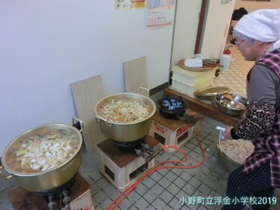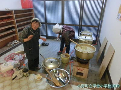 学習発表会後は、婦人会の皆さんが、うどんを準備してくださいます。