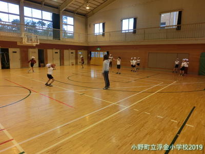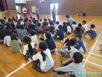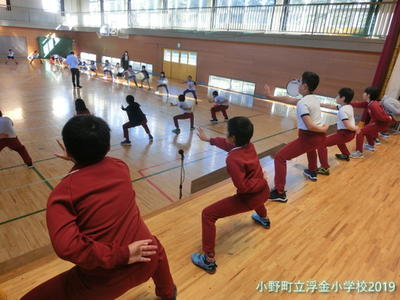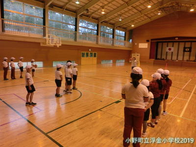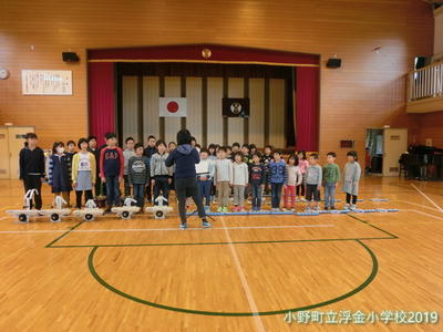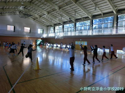 浮金小学校でも、昼の時間に体育館で磨き上げをしました。