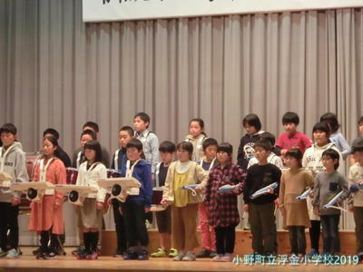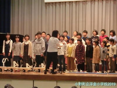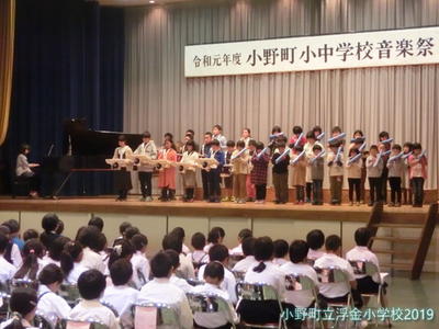 演奏順番5番目、浮金小学校の演奏は校歌の合奏・合唱と「いのちのうた」の合唱でした。