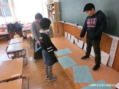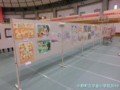 フェスティバルに合わせて浮金小学校も絵と書写の作品を展示しています。