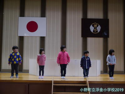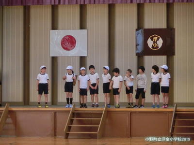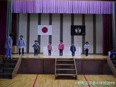 児童園のみなさんが、浮金小学校の体育館で学習発表会の練習をしました。