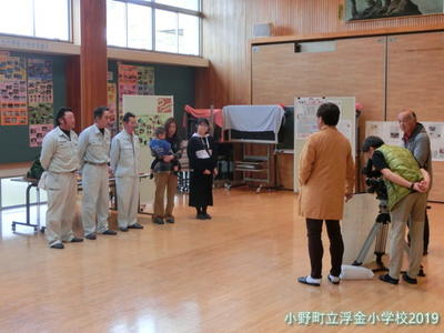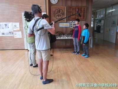 校歌の収録ではなく、校長へのインタビュー、子どもへのインタビュー、授業風景の撮影、子どもの校歌、教職員の校歌、保護者OBの校歌と9時~14時までみっちり撮影、収録していただきました。