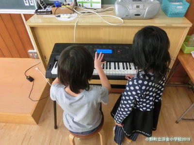 校舎内で、キーボードを弾くもよし、絵をかいたり見たりするもよし、本を読むもよし。