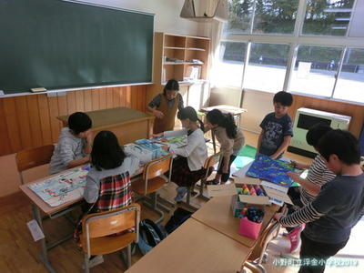 4校時目は各クラスに分かれての授業です。たくさんの友達と名刺交換をして,交流しました。