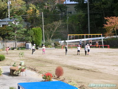 給食を一緒に食べて,昼休みは小野新町小学校の「ハロウィン集会」に混ぜてもらいました。