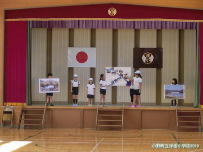 浮金小学校の校歌を会場の皆さんに元気いっぱい紹介することができ、「いのちのうた」では、気持ちをのせた合唱を披露できました。
