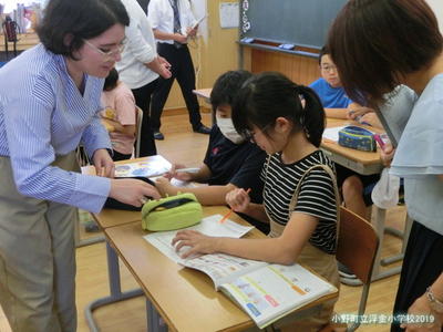 そのインタラックから講師を招き、5・6年生の外国語科の校内研修会を行いました。