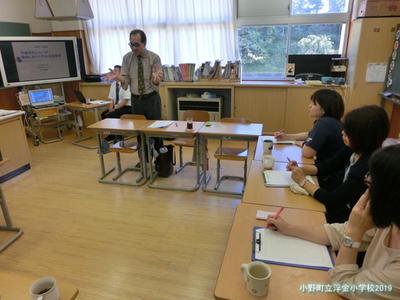 授業後の協議・講話では、コミュニケーションを図る基礎とは、授業の要点は、について5・6年生の授業を基に職員で話し合ったあと、講師に教えていただきました。