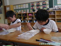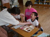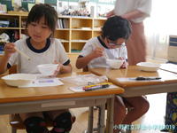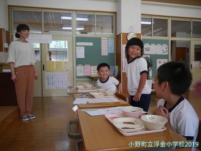 給食センターから栄養教諭に来ていただき、担任と2人で食育指導を行いました。