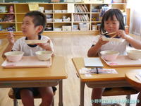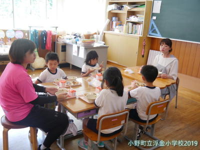 給食では、栄養教諭も一緒になって食べました。実践できていたかな?