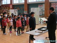 10月初めの全校集会では、まず、書写と作文の表彰を行いました。