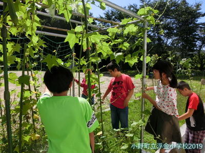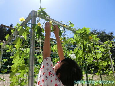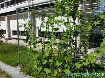 今日の4年生の理科は、外に出てさくらの木とヘチマの観察です。