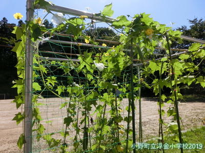ヘチマでは、蜂が何匹かヘチマの花に寄ってきていたので、離れて観察です。