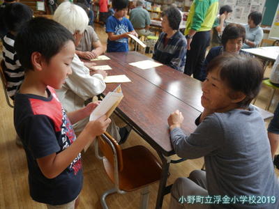 今回の祖父母参観で、おじいちゃん、おばあちゃん方が子どもたちに「浮金」を教えてくださいました。