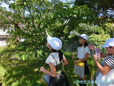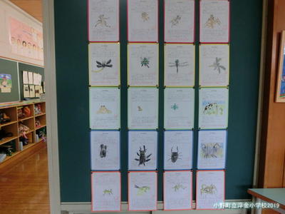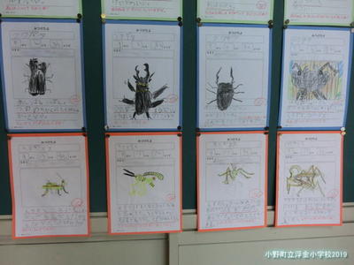 8月、9月に1年生は生活科で「みつけたよ」と虫をつかまえて観察し、記録しました。