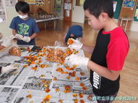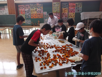 少し乾燥させた花から、がくを外す作業を校長先生がしていると、5・6年生が手伝ってくれました。
