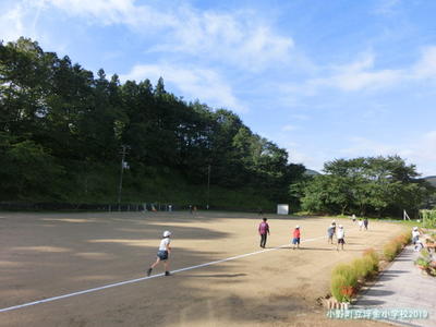登校後、係や委員会の活動をした後は、校庭に出て走ります。
