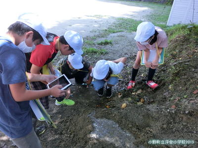 3・4年生は、総合的な学習の時間です。「浮金の自然を調べよう」です。