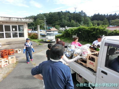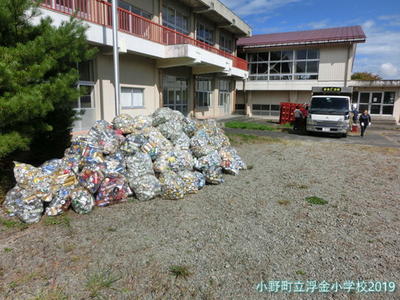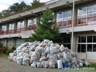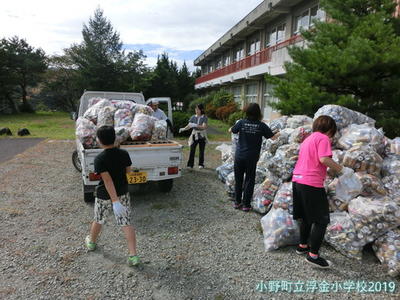 今年も浮金地域のみなさんのご協力によりたくさんの空き瓶、空き缶が集まりました。