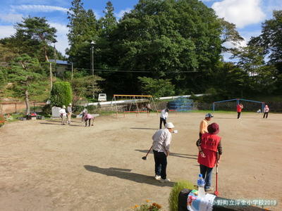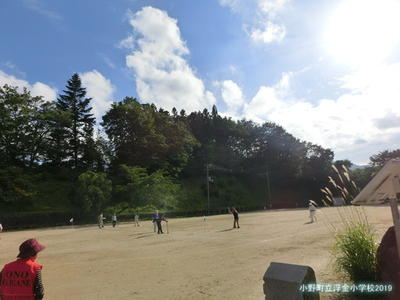 浮金小学校の9月最後の日曜日は、三世代の方々が楽しく運動していて、運動の秋になっています。