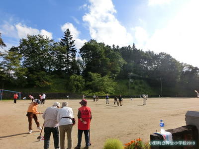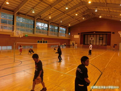 たまたまですが、校庭では、グランドゴルフ、体育館では、親子運動・・・