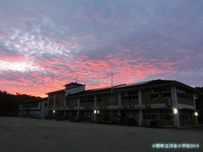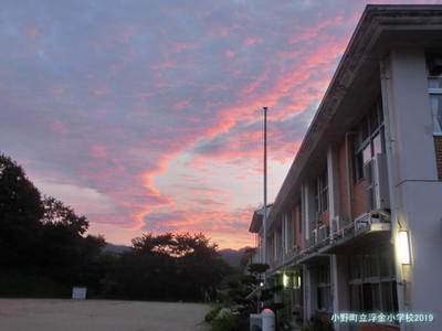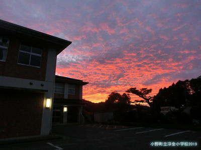 学校を閉め、帰ろうとしたとき空の色の美しさに目がとまりました。
