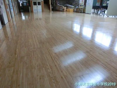 ワックスがけ第2弾です。多目的ホールのワックスがけを行いました。