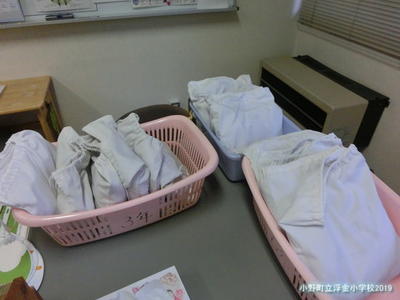 2学期始業の日から給食があります。その前に給食着を整えます。