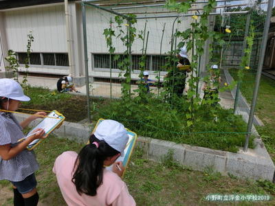 「水をあげて世話をする」「もっとお大きくなってほしい」など自分のヘチマへのやさしさや期待ももったようです。