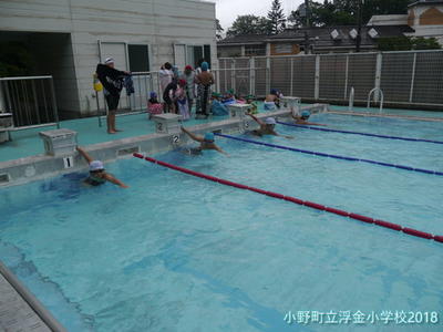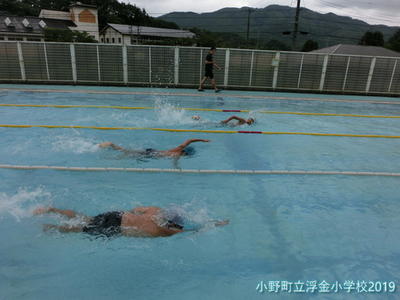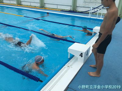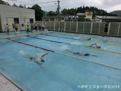 夏休みに入りましたが、まだ肌寒い中、町水泳記録会に向けての水泳練習を行いました。