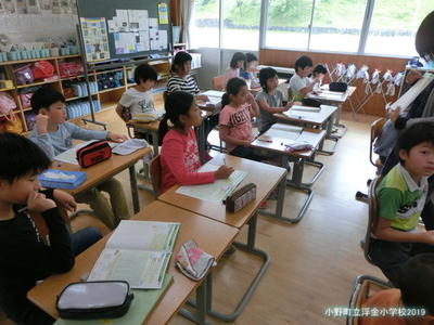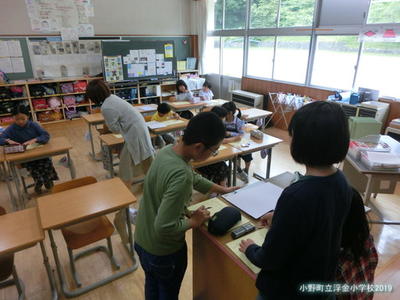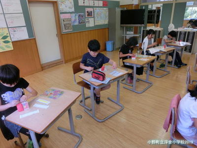 3・4年生はワークシートを使い,手紙の書き方(表書き)について学習していました。