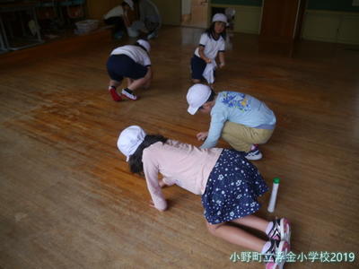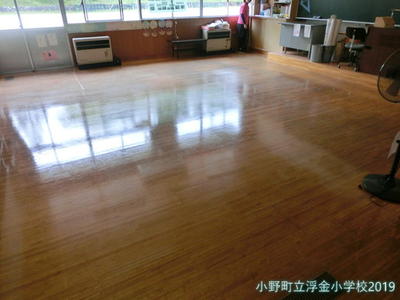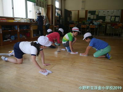 床の水拭きもしました。雑巾がけは一苦労です。担任も頑張ります。