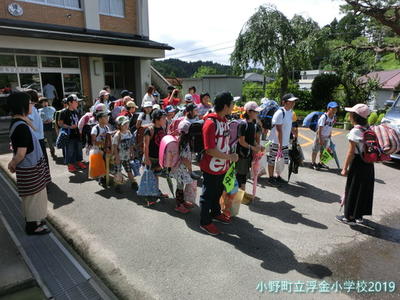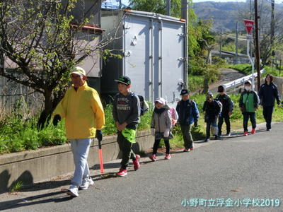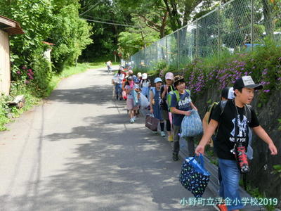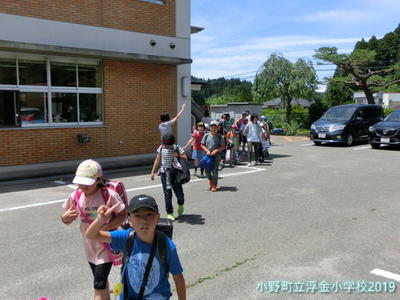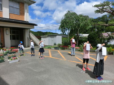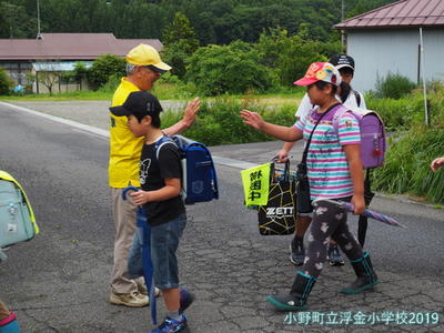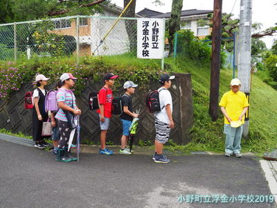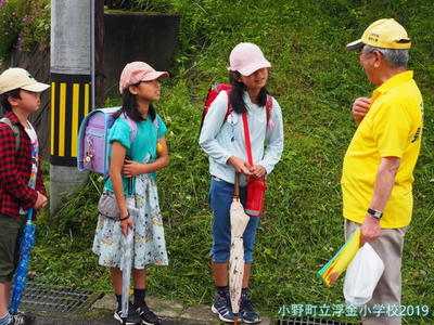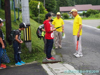 集団登校も最終日です。1学期中一緒に歩いてくださった見守り隊の方々へ子どもたちが感謝の気持ちを伝えました。
