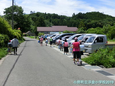 下の駐車場にはずらりとお迎えの自動車が並んでいました。