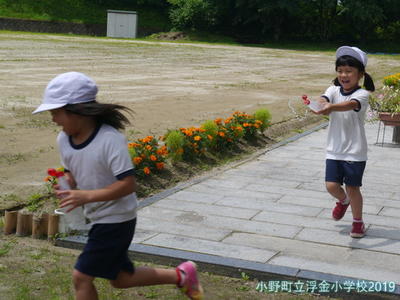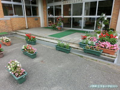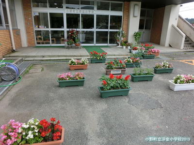 プランターには,天候不順に負けず,きれいに花々が咲いています。用務員さんのおかげです。