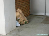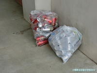 朝、学校に来ると、ときどき写真のように給食搬入口にアルミ缶が置いてあります。