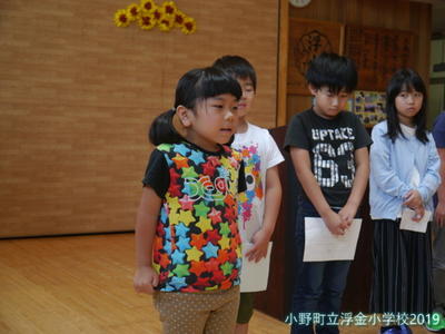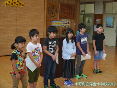 続いては,各学年代表による1学期を振り返っての発表です。それぞれに学校生活で頑張ったことを発表しました。